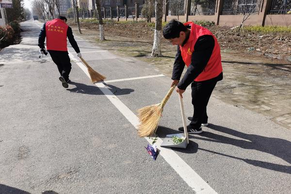 (志愿者在清扫马路上的垃圾)