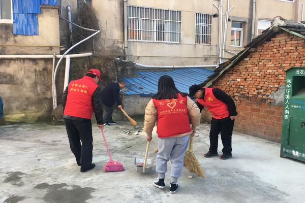 (志愿者在清扫小区卫生死角)